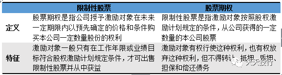 我国上市公司实施股权激励的基本方式包括股权激励与限制性股票两种,两者的具体特征如下表所示:
